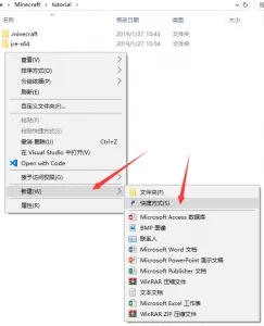 在 tutorial 文件夹内右击空白区域打开快捷菜单,创建快捷方式。