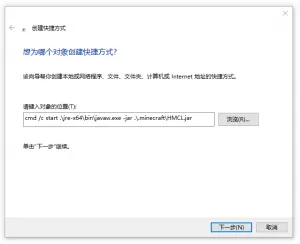标题为“创建快捷方式”的章节接下来我们创建一个快捷方式来使得 HMCL 通过 jre-x64 文件夹里的 Java 运行时启动,并使得 Minecraft 也通过该 Java 运行时启动。