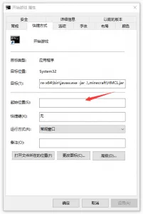 生成好快捷方式后我们还要编辑一下属性,右键 开始游戏 这个新创建的快捷方式(如果你取了别的名字请选中那个文件编辑其属性),在弹出的快捷菜单中选择属性,会打开快捷方式的属性窗口如下图所示:
