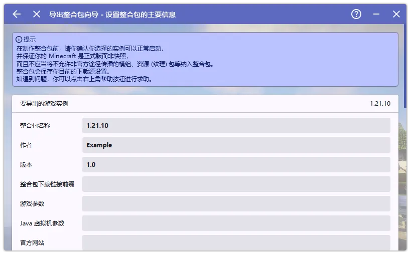 填写整合包信息,整合包下载链接前缀如何填写请看下文