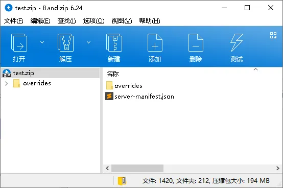 上图为导出的服务器自动更新整合包压缩文件的内容,你需要将这个整合包解压到 http://www.site.com/modpack 下。也就是说,从 http://www.site.com/modpack/server-manifest.json 这个链接下载下来的文件必须和上图中整合包压缩文件中的 server-manifest.json 文件一致,并且,http://www.site.com/modpack/overrides 是一个文件夹,里面存放了整合包文件,比如: